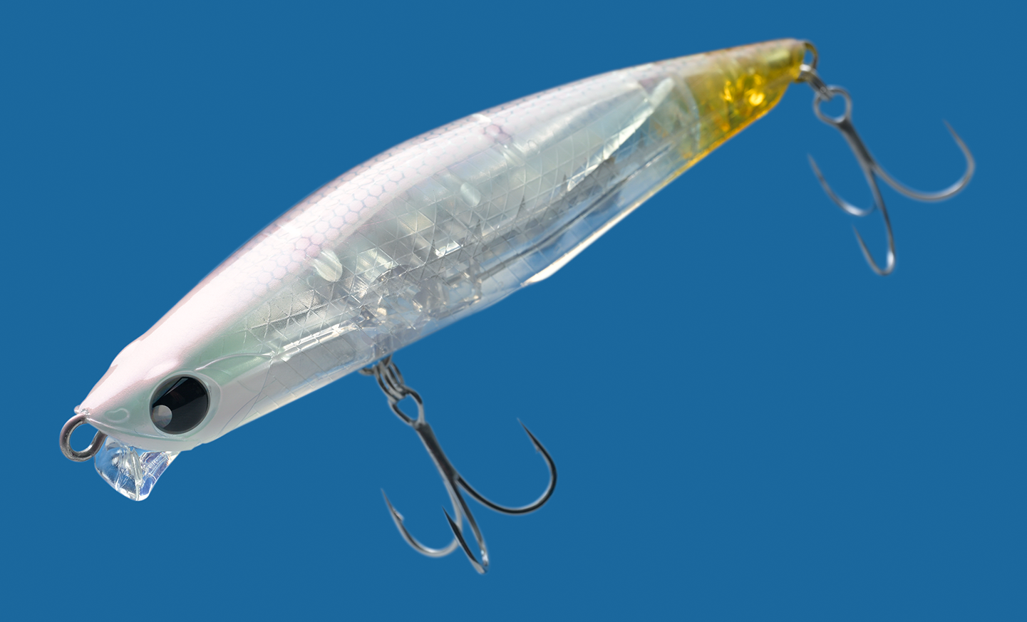 リップ付きシンキングペンシルのBANQ100Sは82Sだとインパクトが弱い、120Sでは強すぎて合わないといった状況下で、その隙間を埋めるML~Mクラスロッドに適応したルアーです。基本のスローリトリーブではシリーズ共通のスローピッチなスラロームアクションでターゲットを魅了し、横風を受ける状況下でも圧倒的耐性をもつショートリップにより着水直後からしっかり水を捉えアクションとレンジをキープし釣果へと繋げます。瞬間的なファストリトリーブでは細かいウォブンロールのミノーアクションに変化。スローなタダ巻きに織り交ぜて素早く逃げ惑うベイトを演出することで見せ方を変えて誘うことが可能です。